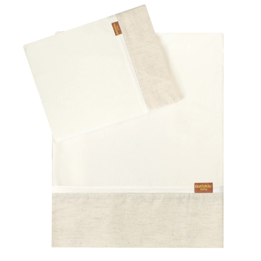 Confeccionado em tecido 100% algodão com detalhes em linho, este jogo de lençol une a maciez do algodão à leveza do linho, garantindo uma textura extremamente suave e respirável, ideal para a pele delicada dos pequenos. A combinação desses materiais proporciona um toque de nobreza e frescor, assegurando o bem-estar do bebê durante o sono.