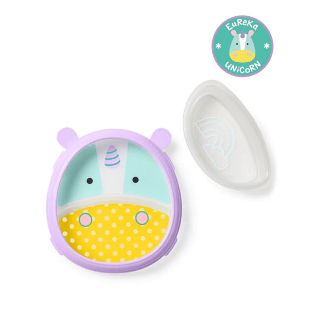 Projetado para incentivar a independência das crianças na hora das refeições, este kit de Prato com Divisória e Bowl Zoo Unicórnio da Skip Hop é a ferramenta perfeita para ensinar os mais pequenos a se alimentarem sozinhos. O aro removível de treinamento (com orelhas fofas) ajuda a guiar a comida para o garfo e para a colher dentro do prato, evitando que caia na mesa ou no chão. O kit de três peças inclui um prato com divisória, além de um bowl translúcido separado que se encaixa perfeitamente dentro do prato. O aro de treinamento é facil de colocar e tirar, se ajustando as suas necessidades. Um fundo antiderrapante evita que o kit se mova com facilidade. Viva com menos bagunça na hora das refeições!