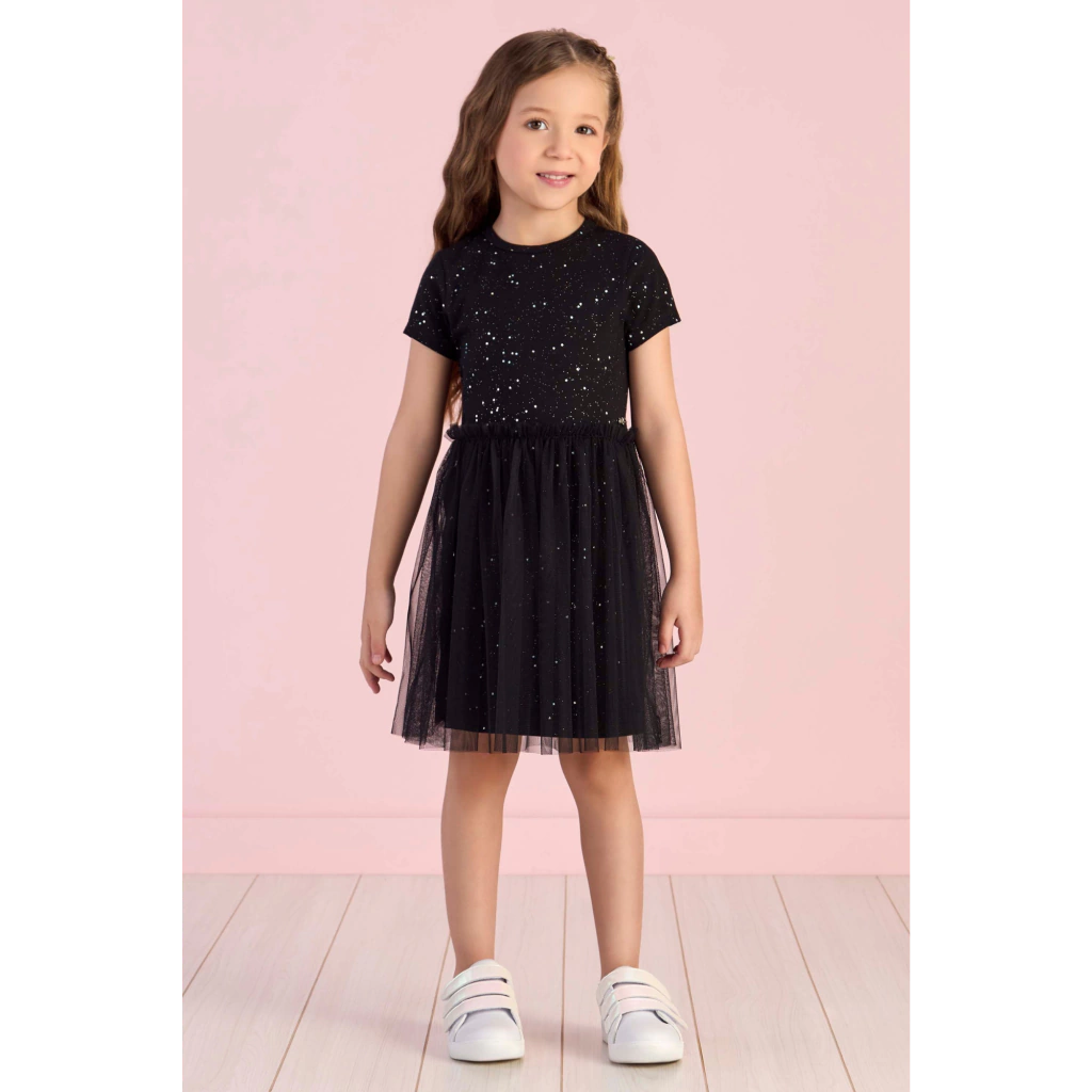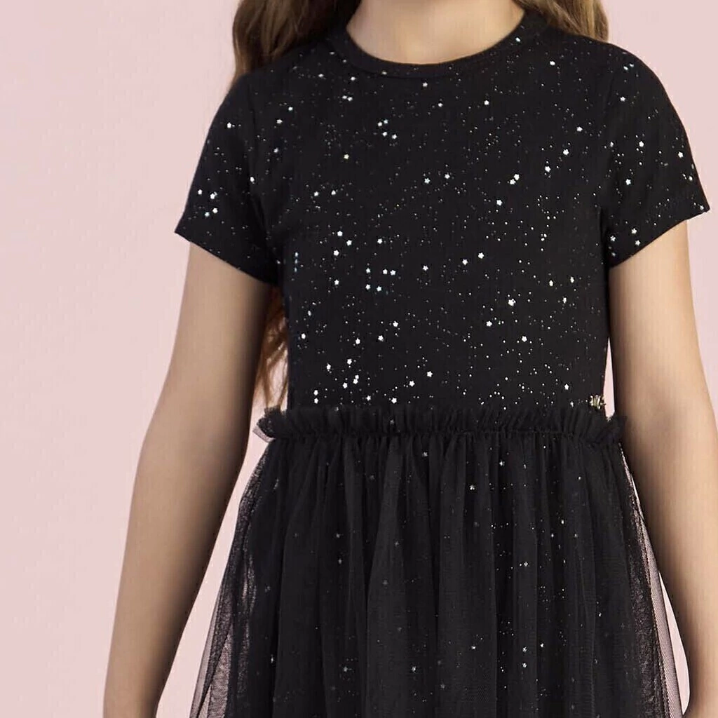 Um pretinho nada básico que brilha como a sua estrela! Esse vestido é perfeito para mães que amam unir conforto com um toque de glamour.